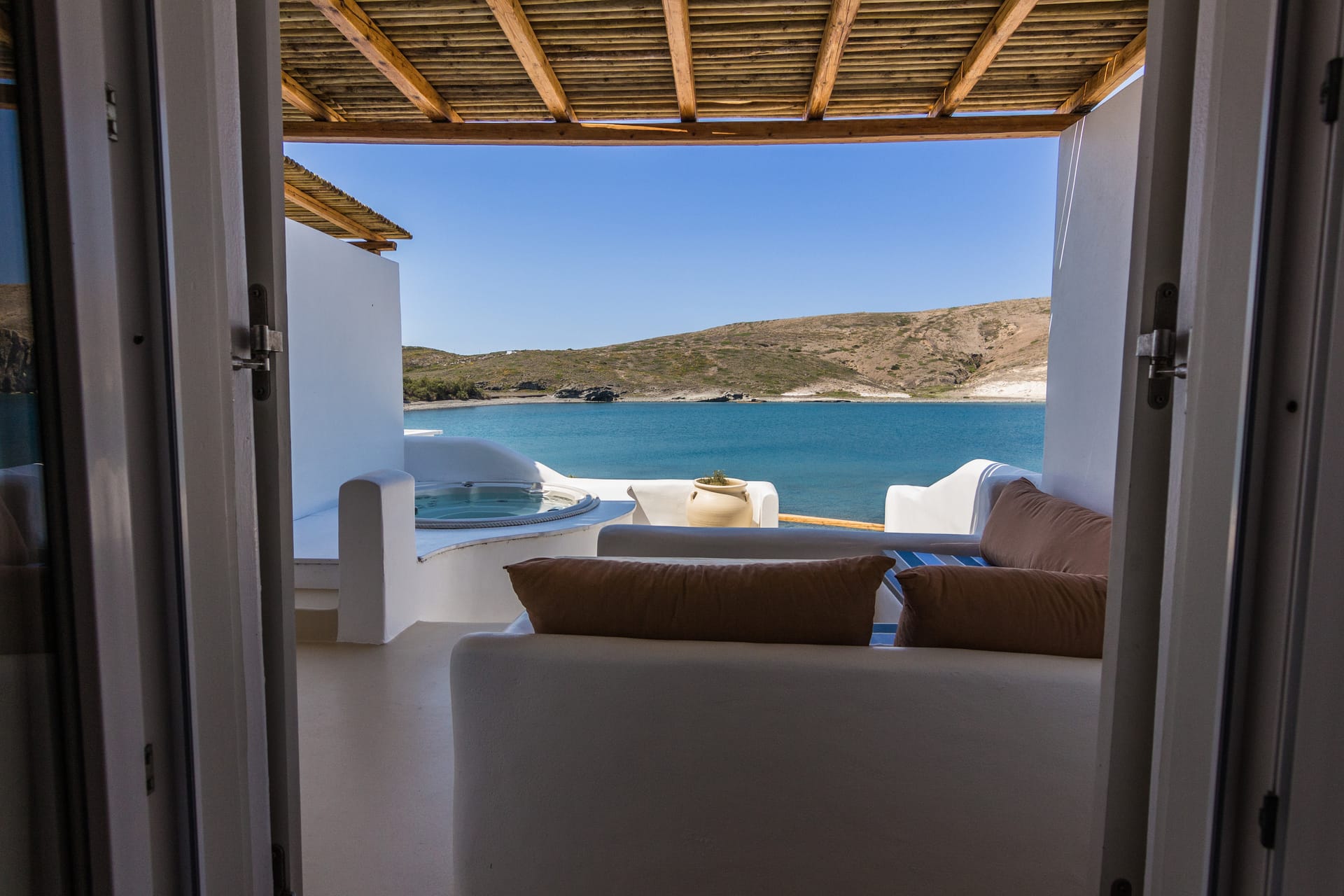It is a suite, 35 m² that accommodates 2 people. It has an outdoor jacuzzi and unlimited sea view.