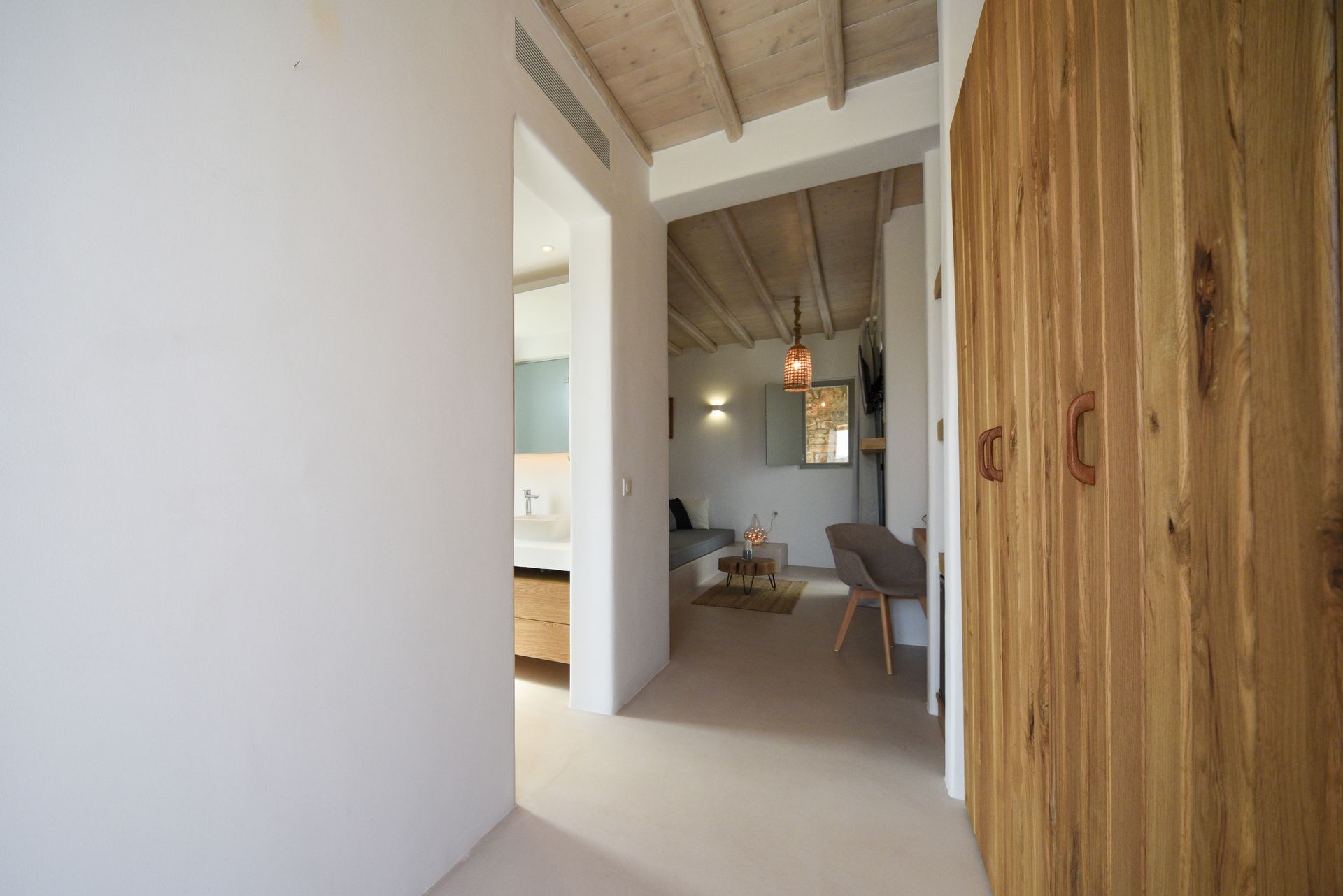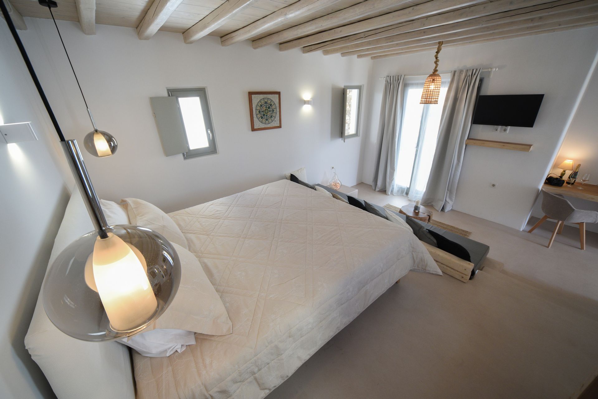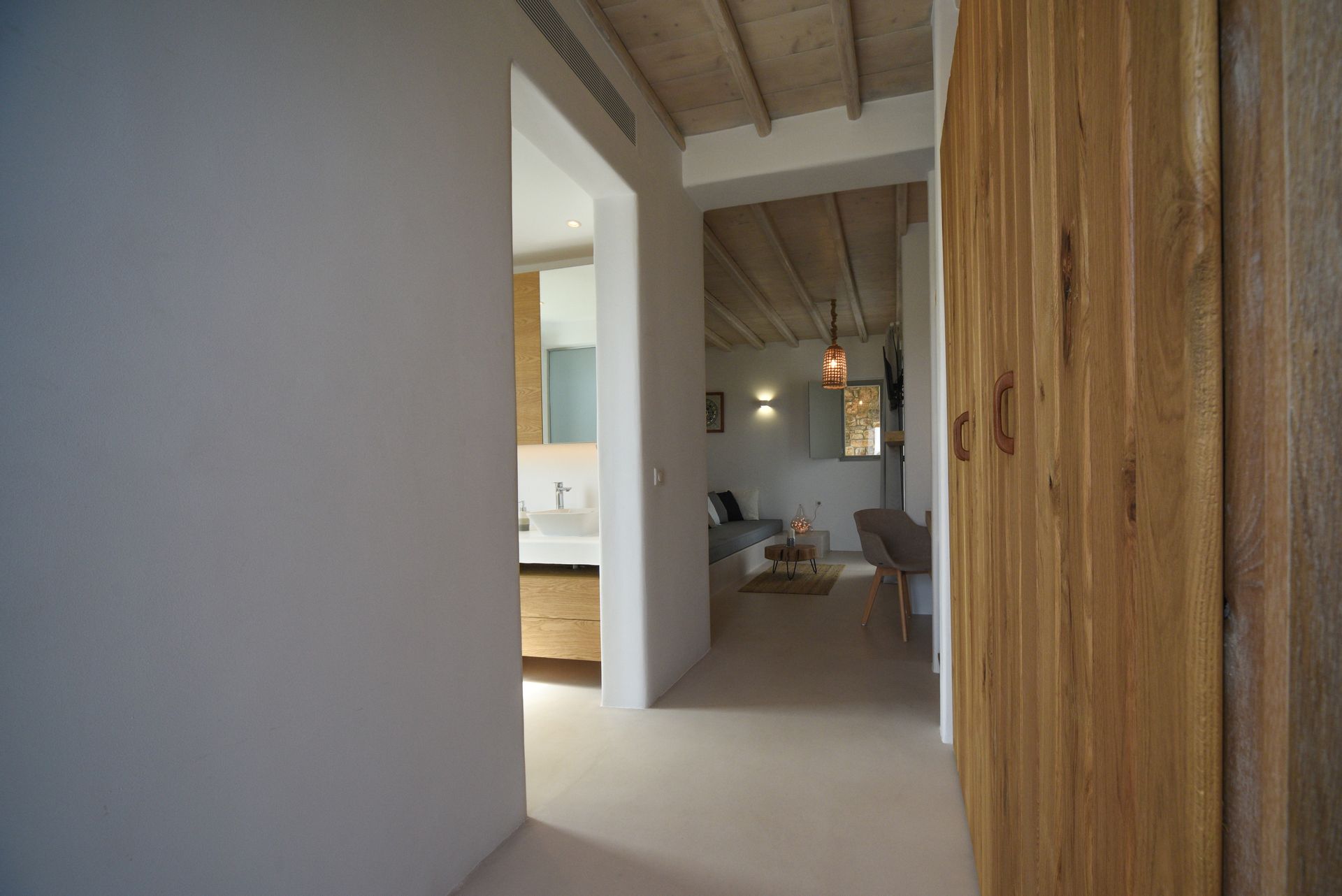 Next to the famous beaches: Kalafatis and Kalo Livadi with direct access to them, this elegant suite is ideal for relaxation.