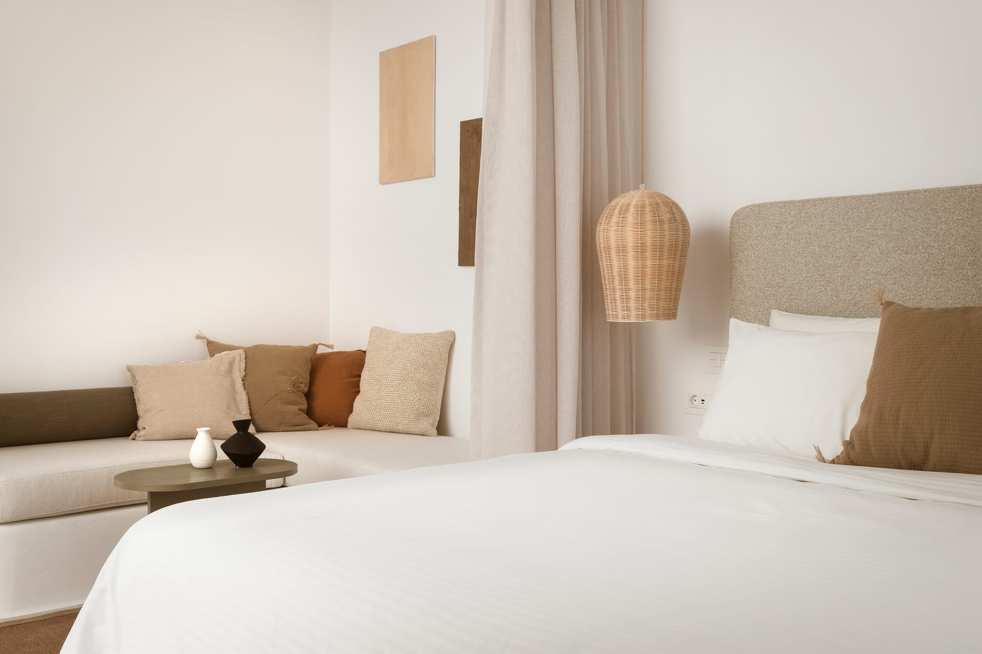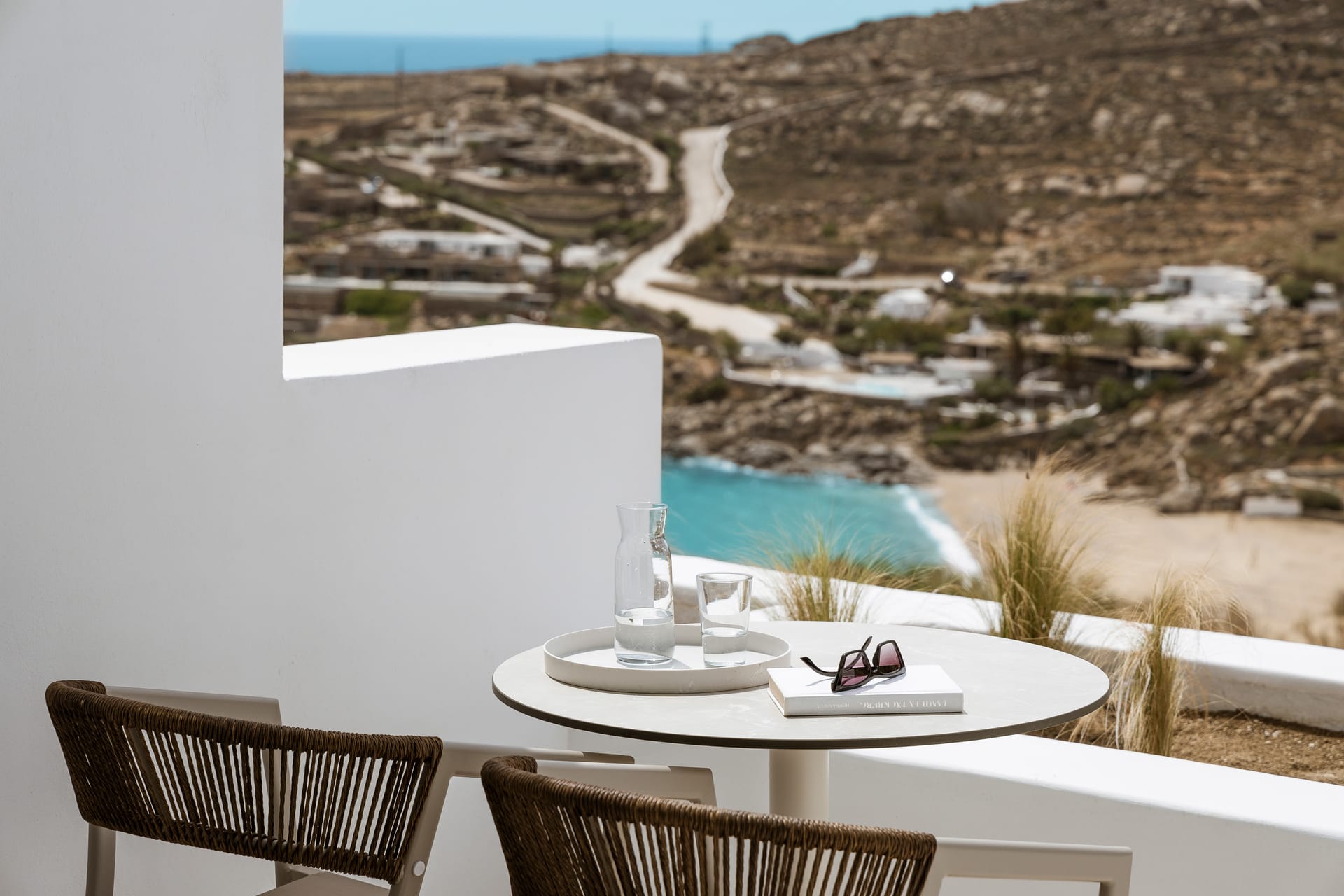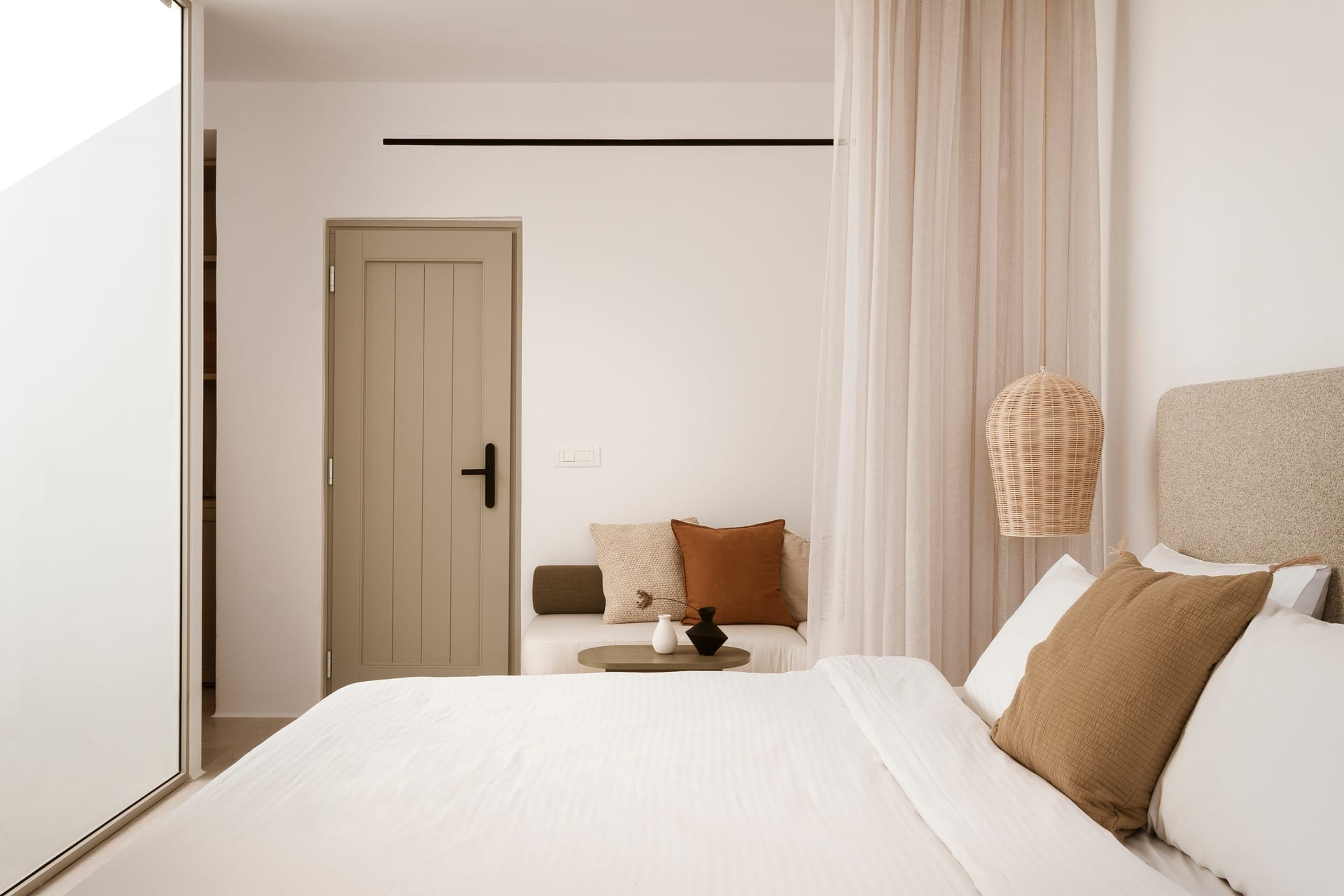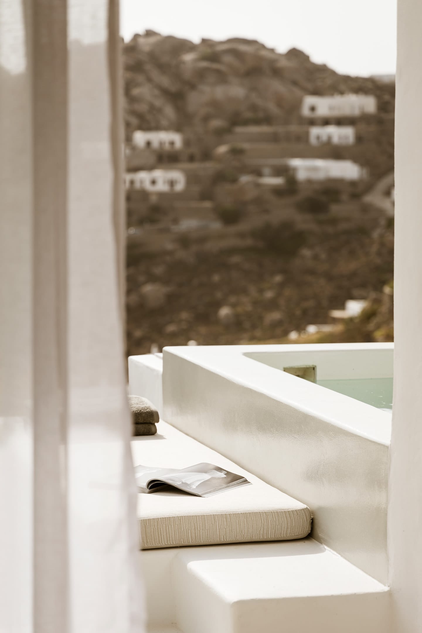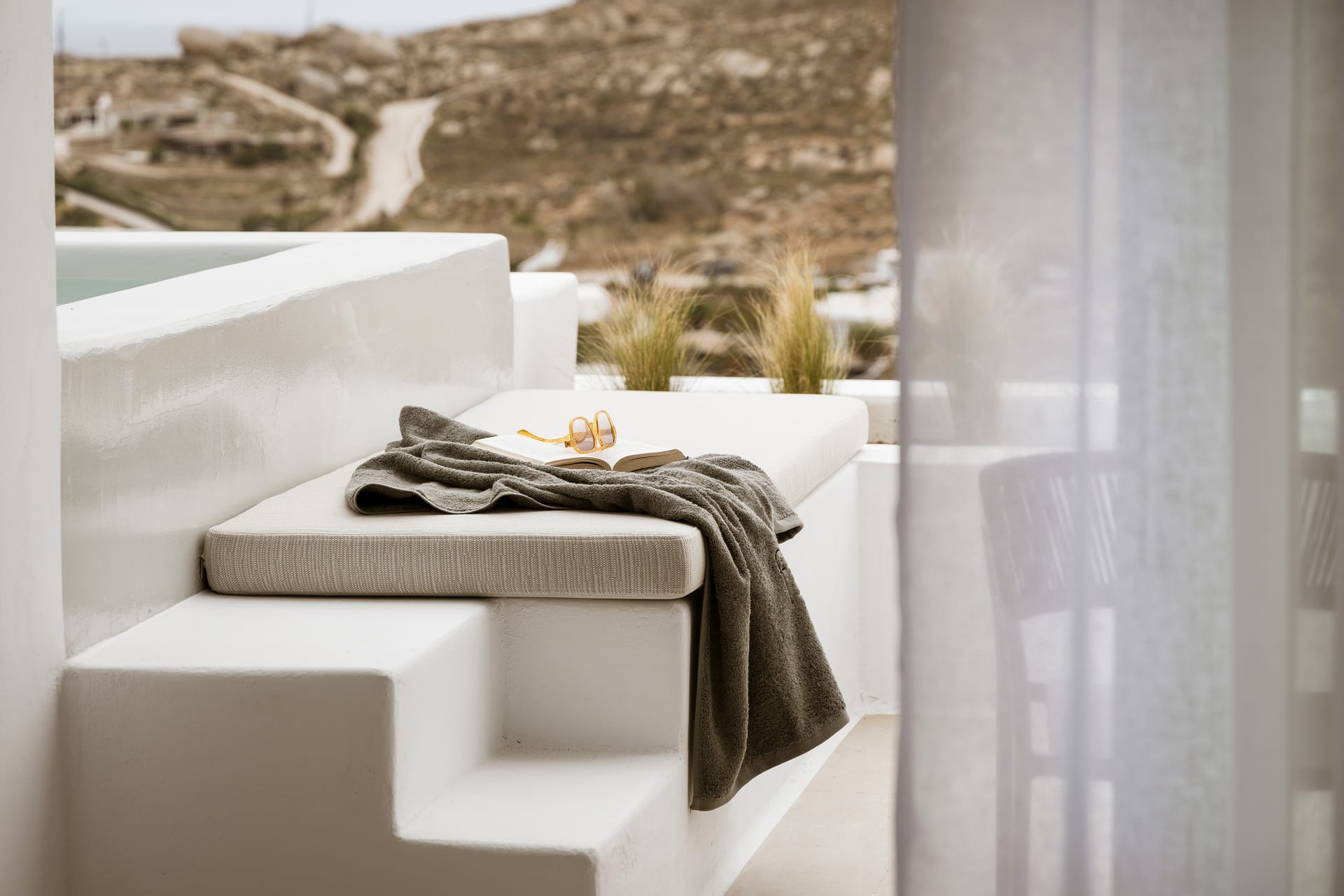 Relax in a Junior Pool Suite with a queen-size bed, a bathroom with shower, and a fully furnished private veranda with a private pool. This 35 m² suite accommodates up to 2 guests. Contemporary furnishings, whitewashed walls, and earthy colors create an unforgettable Myconian experience.