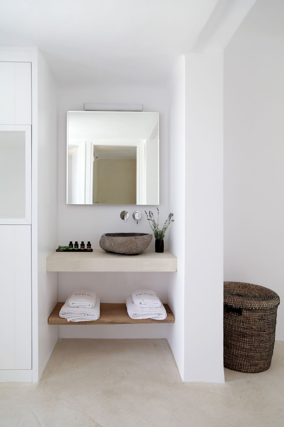The Superior Double Rooms of Livin are a heaven for two in the island of Mykonos. Harmoniously blending modern design with natural elements, the sophisticated decoration of the Superior Double Rooms present their guests with the aesthetics of Cycladic architecture, while offering them pure luxury and all modern amenities for the absolute relaxing, enjoyable stay in the island. They are located in the lower level of the hotel and feature one double bed and a private balcony, with a view to the beautiful gardens.