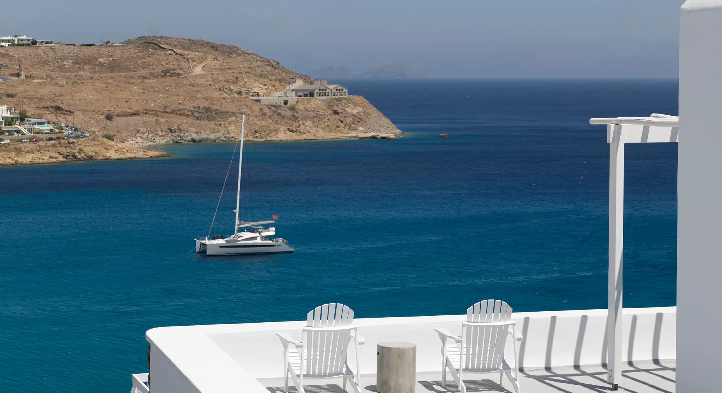 Elevate your Mykonos experience in our Superior Double Room with Sea View. This spacious retreat features a double bed and en-suite bathroom with walk-in shower or bathtub. The stylish sitting area offers a sophisticated space to relax, while your private balcony or terrace serves as a front-row seat to the Aegean Sea.
