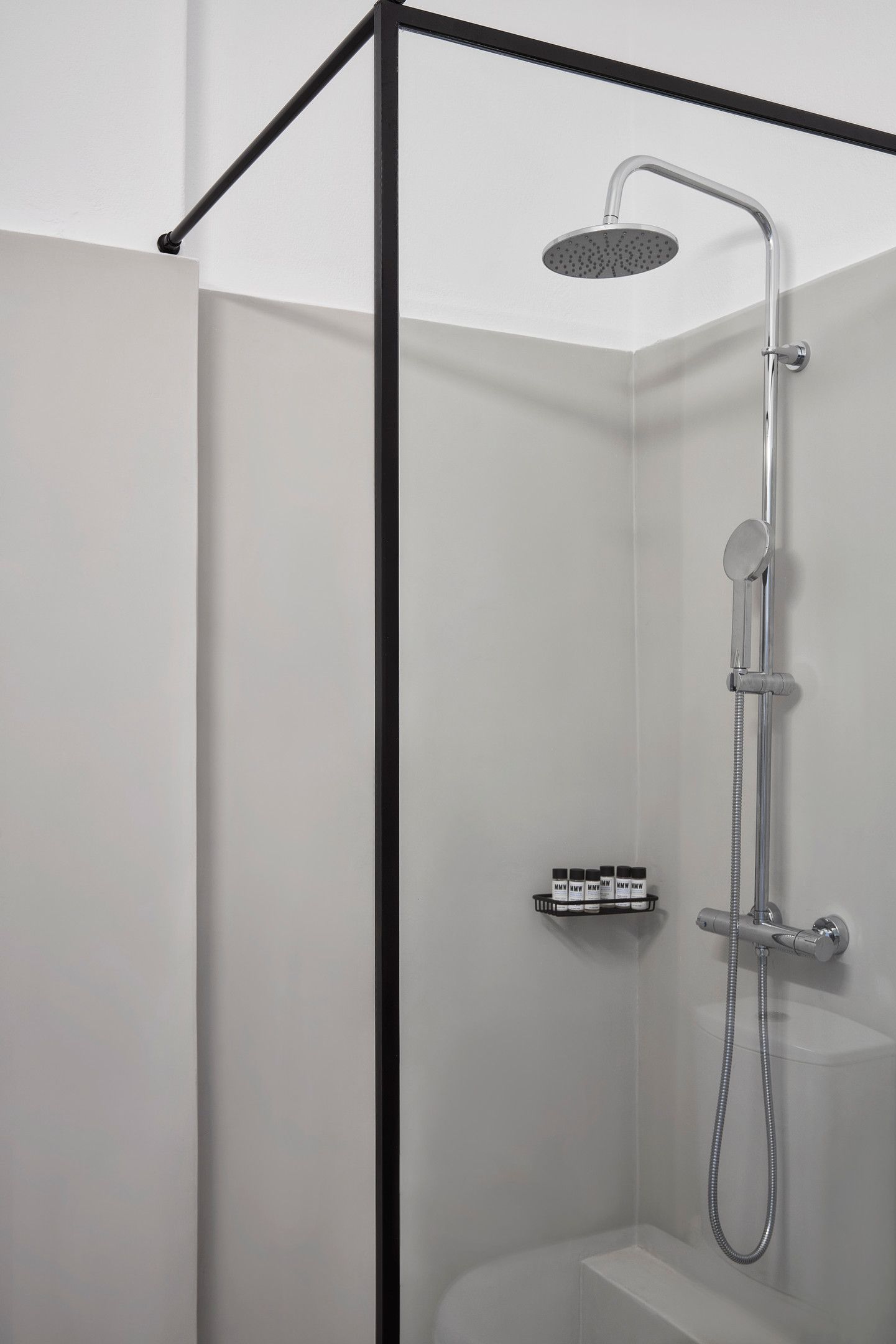 Specially equipped bathroom facilities such as lowered sink, toilet with grab rails, open shower, wider doors. modern bath amenities and a walk-in shower.