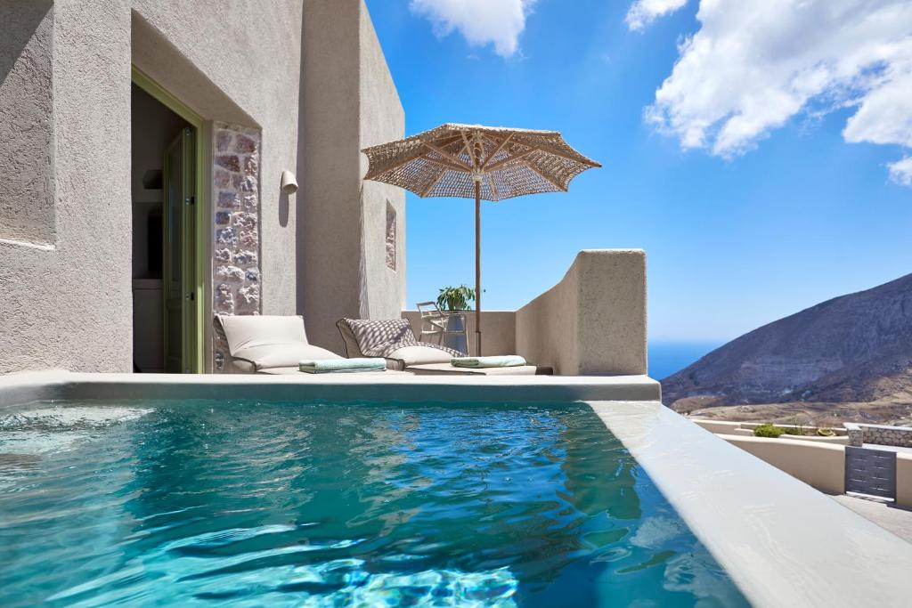 Overlooking the Aegean Sea and the mountain, this Cycladic-style property features elegant accommodations decorated in a warm color palette, combining natural materials with modern design. The air-conditioned rooms include private pools or outdoor hot tubs.